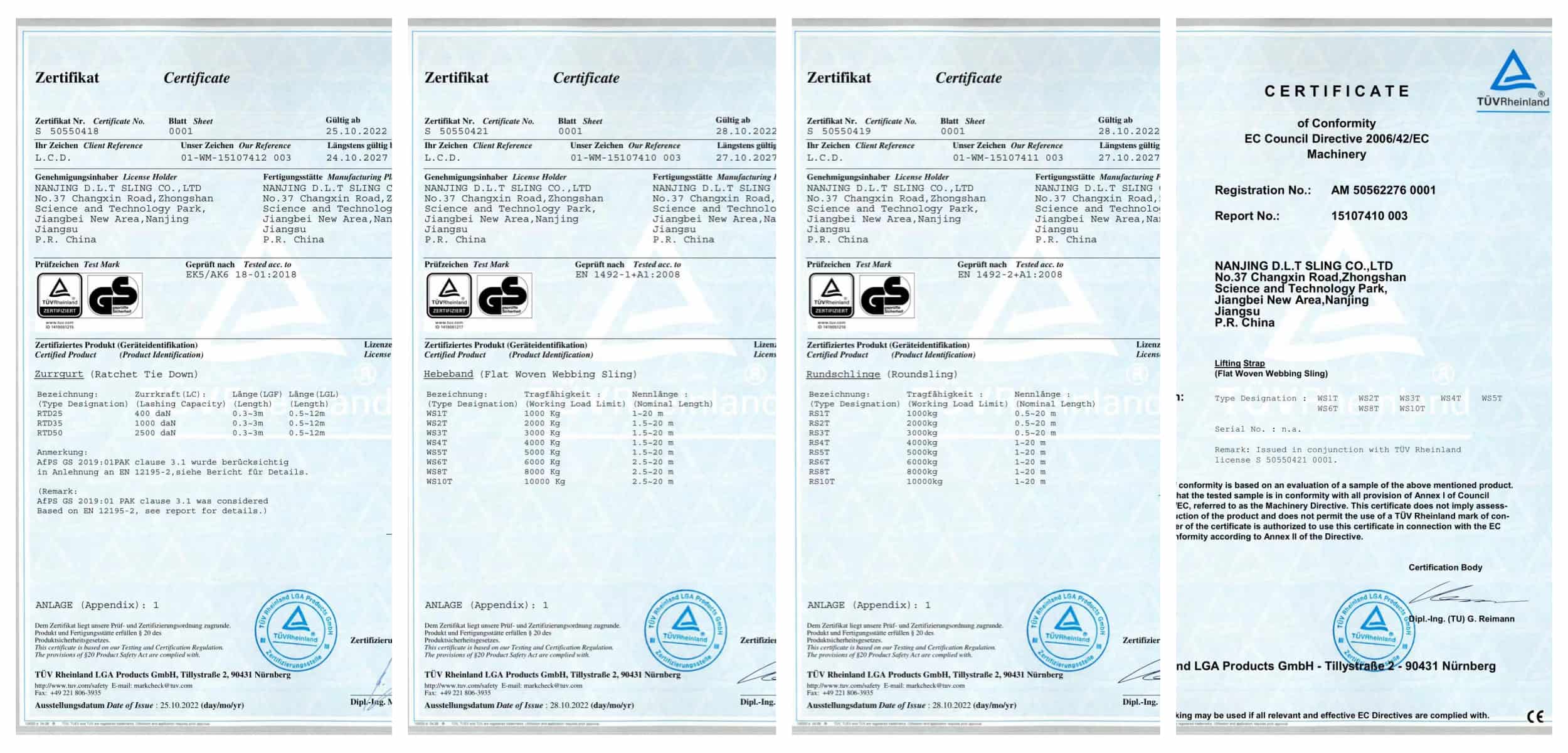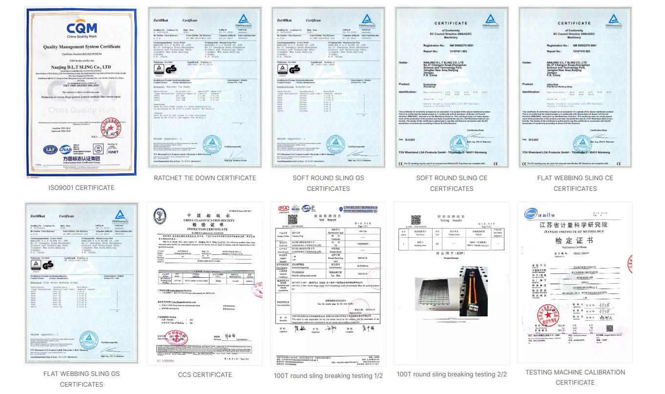 Вся продукция изготавливается из высококачественных полиэфирных, нейлоновых и полипропиленовых волокон в соответствии с международными стандартами, такими как ISO4878, EN1492-1, EN1492-2, ASME B30.9, AS1353, EN12195 и WSTDA. Сертификация ISO9001:2015, дополненная аккредитациями TUV CE и GS, подтверждает нашу приверженность стабильному качеству и соблюдению нормативных требований, обеспечивая бесперебойную интеграцию в глобальные цепочки поставок.